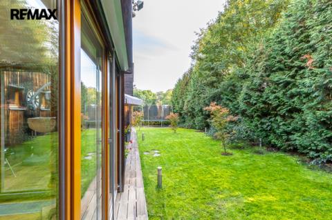 Z obou místností je přímý vstup na zahradu, kde rostou vzrostlé túje o výšce přibližně 7 metrů, které zajišťují maximální soukromí.