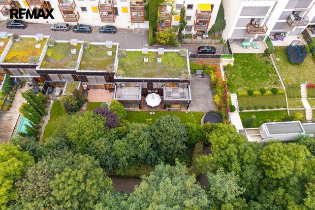 Celková plocha pozemku je 418 m², z toho je k dispozici 283 m² užitné plochy zahrady, kde se nachází velká grilovací zóna pro rodinné posezení a sportovní hřiště.