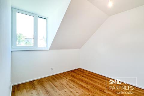 Ve 2NP se nachází tři ložnice, druhá koupelna vybavená vanou a technické zázemí pro pračku, sušičku a další nezbytné domácí náčiní.