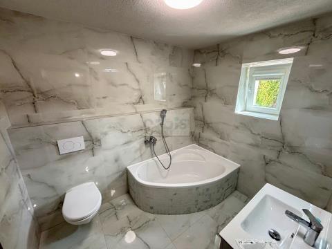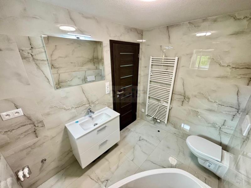 Nabízíme k prodeji nový byt 5+kk/T se zahradou 313 m2, v klidné části obce Svinařov, v nově revitalizované uzavřené lokalitě, vjezd dálkově ovládanými společnými vraty (aktuálně probíhají v lokalitě stavební práce). Byt se nachází v pravé části rodinného, kompletně revitalizovaného domu se třemi byty - zateplení, nová fasáda, střecha, komíny, rozvody. V přízemí bytu, které má čistě obytnou plochu 86,2 m2 nalezneme vstupní chodbu, koupelnu s WC, obývací pokoj s kuchyňským koutem, komorou a terasou (17,5 m2), dále pak jídelnu a další dva pokoje. V prvním patře se nachází prostory s klimatizací a úložnými vestavěnými prostory, o obytné ploše 46,6 m2 skládající se z velkého pokoje s vysokými stropy a vestavěnou konstrukcí pro lůžkovou část a dále koupelna s WC a sprchovým koutem. Prostor v patře by bylo možno využívat i jako druhou bytovou jednotku. V sekci fotografiích jsou předmětný byt i zahrada označeny zelenou barvou. Vytápění přízemní části bytu 4+kk jsou vinylové podlahy, podlahové teplovodní vytápění z vlastního plynového kotle se zásobníkem na teplou vodu a možno využít také vytápění vlastními krbovými kamny v obývacím pokoji, v patře vytápěno radiátory. Byt je kompletně nový včetně rozvodů, skladeb podlah stropních konstrukcí, platových oken. K dispozici také společný sklep a technická místnost - pro tři byty. Bližší informace v RK. Rádi vyřídíme. Financování možné hypotečním úvěrem.