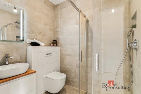 Stylová dřevostavba s prostornými místnostmi, kvalitním vybavením, nešetřilo se na materiálech, například u všech dveří domu, na značkové sanitě, u oken s trojskly použité hliníkové parapety a venkovní žaluzie, vše s důrazem na detail je připraveno k nastěhování. Kuchyni si vyberete podle vlastního vkusu, zahradu podle návrhu architekta. Díky přípravě na fotovoltaiku a kamerový systém získáte komfortní a úsporné bydlení. Sezónní věci snadno uložíte například v zateplené půdě domu.