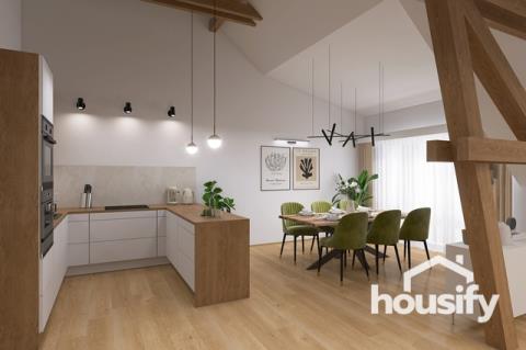 AKCE: první dva kupující získají 150.000 Kč na kuchyňskou linku od Kuchyně Karásek! Toužíte po výjimečném bydlení? Seznamte se s byty unikátního projektu Lofty Lipová v Hodonicích u Znojma. Jeden ze sedmi loftových bytů, kde se historie snoubí s moderními industriálními prvky, může být vaším domovem nebo stabilní investicí. Každý z loftů je navržen tak, aby splňoval nejnáročnější požadavky našich klientů. Čekají vás vysoké stropy, velká okna, otevřené dispozice a kvalitní materiály. Čím je tento byt unikátní? - 5+kk s plochou 156,1 m² - Terasa 40,3 m² - Sklepní kóje 3,5 m² - Vlastní parkovací stání - Vysoký standard vybavení - Prosvětlený loft s přiznanými trámy - Klidná lokalita s výbornou dostupností do Znojma, Brna i Vídně Hlavní obytná část o rozloze 64 m² spojuje otevřený mezonet, obývací pokoj a kuchyňský kout. Výjimečnou atmosféru tohoto prostoru vytváří kombinace minimalistických detailů, industriálního kovového schodiště a hřejivosti přírodních materiálů, jako jsou dřevěné trámy. Pečlivé propojení těchto prvků dodává interiéru nezaměnitelný charakter. Další komfort zajistí tři samostatné ložnice a dvě koupelny s toaletou. Byty kladou důraz na kvalitu a funkčnost. Každý je vybaven klimatizací, podlahovým topením a stíněním střešních oken. Tepelné čerpadlo se stará o ohřev TUV a vytápění. Lofty Lipová reagují na nejnovější trendy v oblasti bydlení v podobě kvalitních materiálů a technologií. Do bytu můžete promítnout vaši osobnost a styl výběrem z řady kvalitních podlahových krytin, dveří, koupelnového vybavení a obkladů prémiových značek. Z bytu můžete vytvořit také luxusní sídlo volbou příplatkových dřevěných podlah, vysokých dřevěných dveří a zárubní, vzdušného skleněného zábradlí schodiště, prosklené stěny v otevřeném patře nebo chytrou domácností Loxone. Ke každému bytu náleží parkovací stání, vlastní terasa a sklepní kóje. Můžete si přikoupit i vlastní uzavřenou garáž nebo další parkovací stání. Lofty Lipová najdete v klidné části obce Hodonice s veškerou občanskou vybaveností. Díky dobrému dopravnímu spojení se snadno dostanete do Znojma, Brna nebo Vídně. Máte-li zájem o více informací nebo prohlídku tohoto jedinečného projektu, neváhejte nás kontaktovat. Rádi vám poskytneme veškeré podrobnosti. Zajistíme také financování nemovitosti. Zaručujeme profesionální přístup a ochotu vyjít vstříc vašim požadavkům.