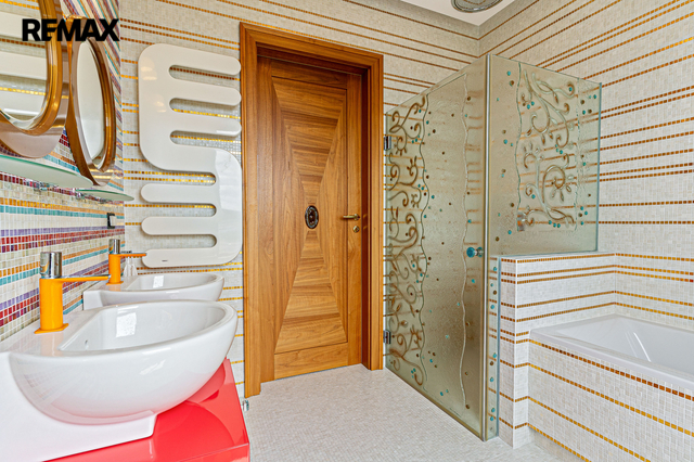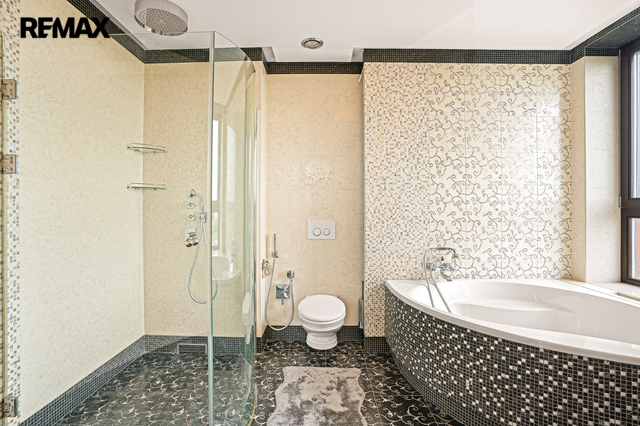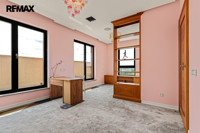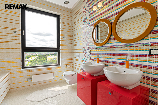 Exkluzivně nabízíme k prodeji výjimečný dvoupatrový byt o celkové výměře 320 m², nacházející se v posledních dvou patrech rezidenčního domu v ulici Jeremiášova. Byt poskytuje jedinečný 360° panoramatický výhled na celou Prahu a vznikl spojením čtyř bytů. Dispozice a vybavení: - Velkorysá dispozice 8+1 s několika technickými místnostmi - 5 balkonů s různou orientací - Plynový krb - Sauna - Vestavěné skříně na míru a vybavení nejvyšší kvality z Itálie (dlažba, sanita, detaily) - Zavedená klimatizace - Systém filtrace vody - Systém chytré domácnosti. Samotný dům je velmi udržovaný a čistý. Parkování a zázemí: - Oddělená uzavíratelná garáž poskytující 4 parkovací místa - Prostorný sklep Lokalita: Ulice Jeremiášova se nachází v atraktivní části Prahy s výbornou dopravní dostupností, v blízkosti zeleně, obchodních center, škol a veškeré občanské vybavenosti. Tento byt je ideální pro náročné klienty, kteří hledají nadstandardní bydlení s absolutním soukromím, jedinečným výhledem a perfektním zázemím. Pro více informací a sjednání prohlídky nás prosím kontaktujte.