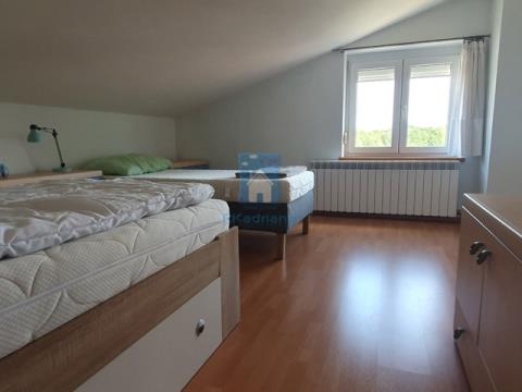 Nabízíme k prodeji mezonetový byt o velikosti 116 m² se čtyřmi ložnicemi a dvěma koupelnami. v blízkosti Poreče, 2 km od nákupních center, 4 km od moře, v klidné lokalitě. Mezonetový byt se nachází v 1. a 2. patře, celková plocha 116,55 m² (Spodní patro: chodba, kuchyň, jídelna, obývací pokoj, ložnice a koupelna. Horní patro: chodba, tři ložnice a koupelna). K bytu patří dvůr o rozloze 73,90 m² a parkovací místo o rozloze 13,50 m². Ústřední topení. Zařízený. Byt je ideální pro větší rodinu nebo ubytování pro větší počet osob.
