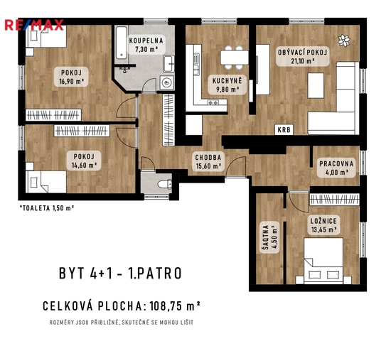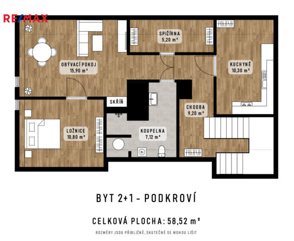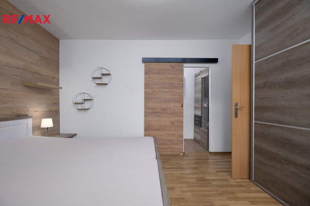 • ložnice s manželskou postelí a velkými skříněmi – připravená k okamžitému nastěhování,