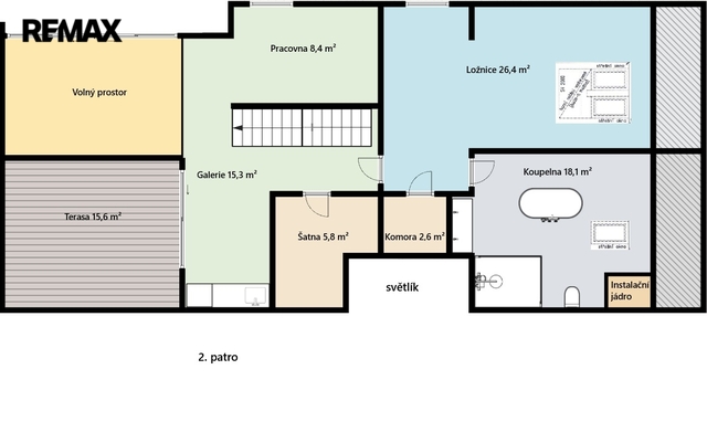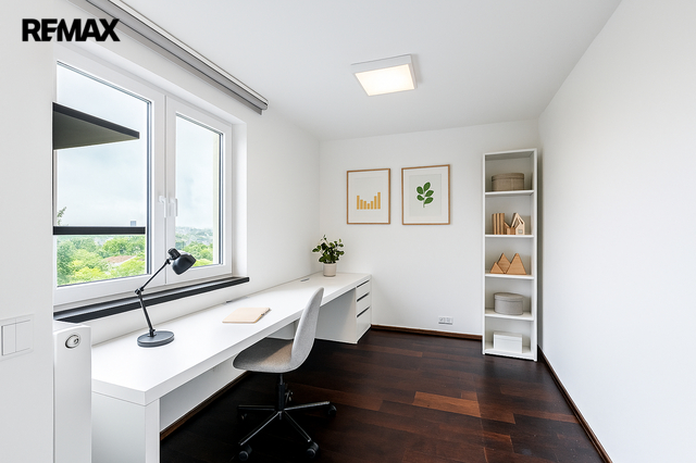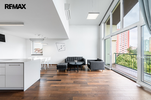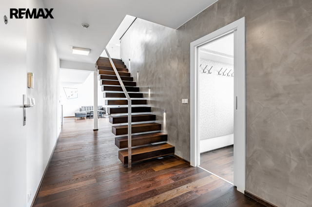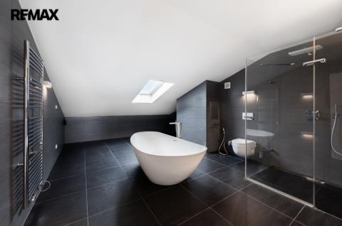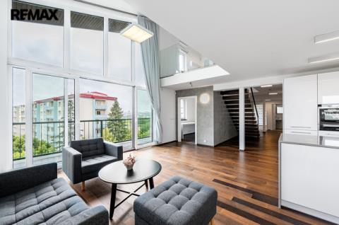 Exkluzivně nabízím k prodeji reprezentativní mezonetový byt 5+KK o celkové užitné ploše 204 m², s lodžií (6,6 m²), terasou (15,6 m²) a vlastním parkovacím stáním. Byt se nachází v nejvyšším, pátém patře bytového domu s výtahem. Od výtahu k bytu vede samostatné schodiště. Převod do osobního vlastnictví se dokončuje. Byt disponuje dvěma podlažími. Prvnímu patru dominuje prostorný a světlý obytný prostor s kuchyňským koutem, který je vybaven vestavěnými spotřebiči. Z obývací části je přístup na terasu orientovanou na západ. V tomto podlaží se dále nachází tři pokoje – jeden z nich má vlastní šatnu a en-suite koupelnu se sprchovým koutem a toaletou. Další toaleta je přístupná z chodby a navazuje na technickou místnost s plynovým kotlem a místem pro pračku a sušičku. V horním patře je hlavní ložnice s vlastní koupelnou, která je vybavena masážní vanou, sprchovým koutem a toaletou. Součástí této úrovně je galerie navazující na pracovnu a také jižně orientovaná terasa a vestavěné úložné prostory. Byt je vybaven dřevěnými podlahami a dlažbou, okna jsou plastová s trojsklem s orientací na sever, jih a západ. K příjemnému klimatu přispívají klimatizační jednotky a elektrické/manuální vnitřní rolety. Vytápění a ohřev vody zajišťuje vlastní plynový kotel. Internet je přiveden optickým kabelem. Byt je zabezpečen s napojením na bezpečnostní agenturu. Bytový dům se nachází na oploceném pozemku s udržovanou zelení a parkovací zónou pro obyvatele domu. V okolí je kompletní občanská vybavenost – školy, školky, lékařská zařízení, obchody, restaurace a sportoviště. V docházkové vzdálenosti je také několik parků a zelených ploch. Dopravní dostupnost Lokalita Záběhlice nabízí výborné spojení do centra města prostřednictvím MHD i autem. V blízkosti jsou zastávky autobusů i tramvají, rychlé napojení na Jižní spojku. Pokud máte zájem o prohlídku, prosím vyplňte formulář pod inzerátem a budeme vás kontaktovat s možnými termíny. V případě většího zájmu bude nemovitost prodána nejlepší nabídce. Pozn.: Rozměry ploch jsou orientační. Prodávající si vyhrazuje právo vybrat kupujícího na základě jím zvolených kritérií.