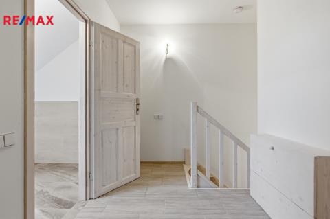 Celé podlaží působí vzdušně a poskytuje dostatek místa pro vícečlennou domácnost, dětské pokoje, pracovny či hosty.