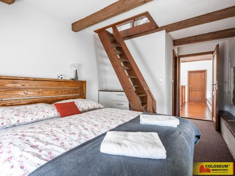 Ve výhradním zastoupení nabízíme ke koupi zavedenou chalupu Špejchar v obci Blažejov-Oldřiš nacházející se v Jižních Čechách. Původní statek z roku 1860 byl několika rekonstrukcemi, z nichž poslední proběhla v roce 2011, přestavěn na rekreační chalupu s venkovním posezením, bazénem, finskou saunou a parkováním. Nemovitost se nachází na pozemku o rozloze 16 160 m² (dle výpisu z katastru nemovitostí). V přízemí budovy se nachází dominanta celé obytné části - společenská místnost o přibližné výměře 80 m². Dále se zde nachází kuchyně, finská sauna, koupelna, technická místnost a dvě toalety. V patře se nachází dva dvoulůžkové pokoje a dva čtyřlůžkové, které jsou oba rozděleny na dvě ložnice, z nichž se jedna nachází v podkroví. Ke každému pokoji náleží koupelna s toaletou a sprchou. Celková kapacita lůžek je 12 + 2 přistýlky. Ve společenské místnosti se nachází krbová vložka, která zajišťuje centrální vytápění celé nemovitosti, dále se zde nachází další krb pro navození atmosféry během chladných večerů. Pro doplnění vytápění jsou v nemovitosti umístěny elektrické přímotopy. Dům má vlastní zdroj vody a odpad je řešen septikem. Průkaz energetické náročnosti budovy nebyl dodán, z tohoto důvodu uvádíme třídu G. Veškeré uvedené plochy jsou přibližné a mají orientační charakter. Dům nabízí spoustu možností využití, od pokračování v zavedeném podnikání až po přestavbu na rozsáhlý rodinný dům. Kromě ubytovacích služeb je dům aktuálně využíván i jako školící středisko. K rekreaci zde nalezneme zastřešený bazén ohřívaný tepelným čerpadlem, což zvyšuje komfort a prodlužuje možnost koupání. V okolí se nabízí mnoho možností aktivního vyžití od cykloturistiky, houbaření až po golfová hřiště. Nedaleký Jindřichův Hradec zajišťuje veškerou občanskou vybavenost až už pro ubytované turisty a nebo pro stálé obyvatele domu. Pro více informací nebo sjednání termínu prohlídky neváhejte kontaktovat realitního makléře.