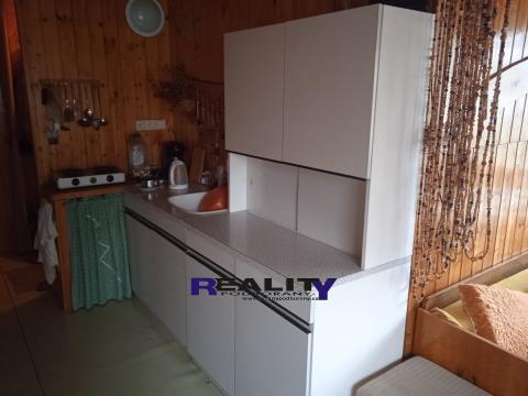 Dispoziční uspořádání do tvaru písmene " L " : celkem 4 obytné místnosti, v přízemí dvě samostatné místnosti spojené verandou + koupelna se sprchovým koutem. V podkroví další dvě samostatné místnosti, vhodné jako pracovna či ložnice. Díky tomuto stavebnímu uspořádání je pobyt také vhodný i pro početnější rodinnou rekreaci nebo 2 rodiny, případné dlouhodobé návštěvy či víkendové pronajímání. Vytápění zajišťují kamna na tuhá paliva, sporák je na plynovou bombu. Chata je zateplená a zařízená, vstupy do jednotlivých přízemních místností jsou zabezpečené venkovními mřížemi včetně oken. V přízemí jsou dřevěná okna, v patře nová plastová. Pod chatou jsou uzavřené prostory na úschovu nářadí, apod.