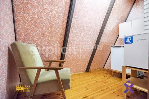 Ing. Martin Kovář & Explicit Reality Vám nabízí k prodeji pěknou chatu ve vyhledávané a klidné lokalitě Zlín – Příluky, v oblasti Nad pramenem. Základy a spodní část chaty je zděná s navazující dřevěnou konstrukcí, patrová a ve stavu umožňujícím okamžité užívání bez nutnosti větších investic. Dispozičně nabízí obytný prostor s kuchyní, sprchový kout a další zázemí pro pohodlný pobyt. Velkou předností je balkón a prostorná terasa, ideální pro relaxaci, posezení s rodinou či přáteli a užívání si klidu okolní přírody s krásnými výhledy na Zlín a okolí. Velikost chaty je 52m², plocha pozemku činí 698 m², což poskytuje dostatek prostoru pro zahradničení, odpočinek i volnočasové aktivity. Voda je zajištěna ze společných studní, mimo zimní měsíce, odpad a wc je řešeno jímkou. Lokalita je klidná, obklopená zelení, a přitom s dobrou dostupností do centra Zlína. Nemovitost je vhodná jak k rekreačnímu využití, tak i jako investice do budoucna. Pro více informací nebo domluvení prohlídky mě neváhejte kontaktovat. Martin Kovář - Explicit reality
