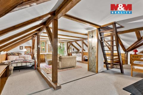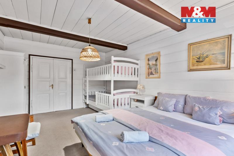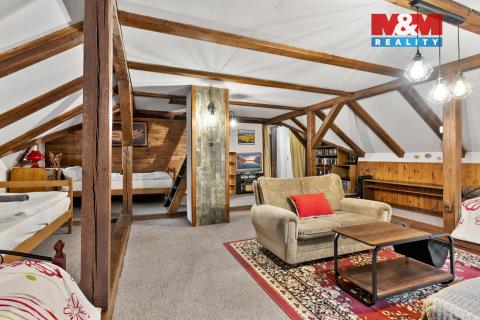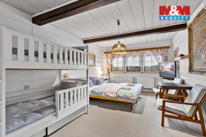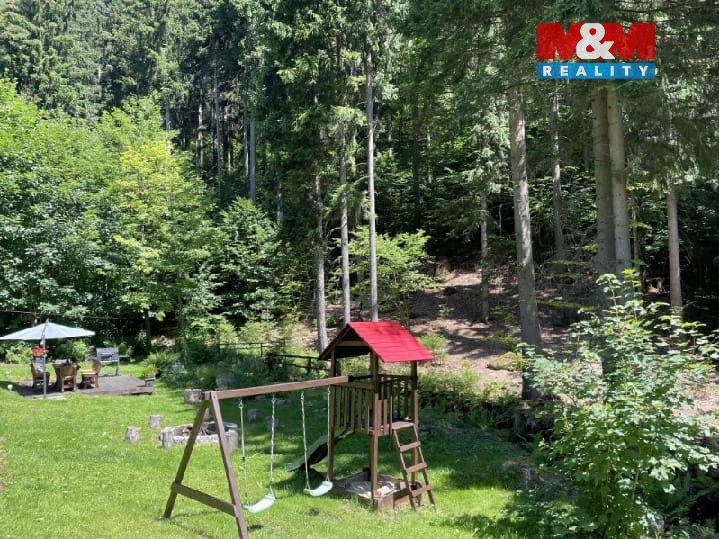 Rodinný dům sloužící jako chalupa jménem Sněhurka, se nachází v Desné u Jablonce nad Nisou a je ideální pro velkou rodinu nebo jako výnosná investice, která má svého správce, celoroční obsazenost hosty, výborné recenze a v současné době výdělečnost na pronájmu 900 tis. Kč ročně. Dům v roce 2024 prošel poslední rekonstrukcí a je celý podsklepený. Interiér nabízí veškeré vybavení k okamžitému provozu, prostorný 55 m² obývací pokoj s krbem, stylovou 22 m² moderní kuchyni, 4 ložnice (15-45m²), 2× WC, 2× koupelna. Kolem pozemku o výměře 1692 m² protéká potůček, který dodává kouzlo v přírodě, avšak přímo za domem najdete také koupaliště pro letní užívání a v zimě možnost bruslení. U domu se dá pohodlně zaparkovat s místem pro 5 aut včetně garáže a zahrada nabízí dětské hřiště s příjemným posezením u lesa. V blízkém okolí, jen 10 min pěšky,se nachází lyžařský vlek Černá Říčka, přehrada Souš a spousta dalších zajímavých míst. Pro více informací si domluvte prohlídku na kterou se budeme těšit