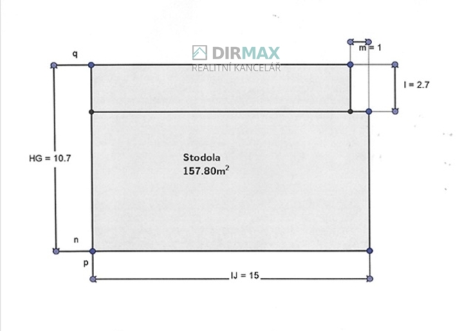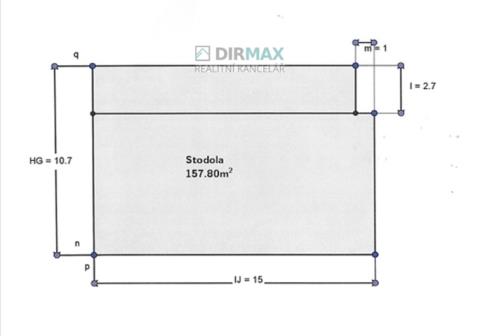 Stodola je s výměrou 157m2, celkem je tedy zastavěná plocha 270m2.