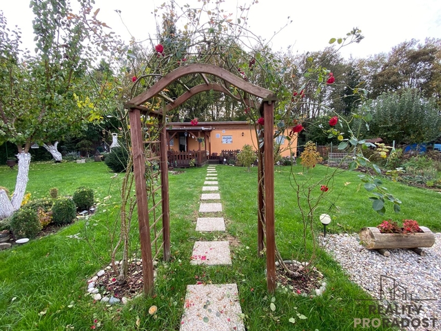 Nabízíme k prodeji zahradu o velkosti 750 m2 v obci Příkazy. Zahrada je oplocená, velmi pěkně udržovaná, je zde skalka, jezírko, gril, okrasné i plodící stromy a keře. Na zahradě je umístěný mobilheim s terasou a posezením. Dispozičně je řešený jako 3+1, je zde prostorný obývací pokoj, kuchyně vybavená kuchyňskou linkou a jídelním koutem, dvě zařízené ložnice vestavěným nábytkem, koupelna se sprchovým koutem, umývadlem a WC. Je zde také úložný prostor s bojlerem. Mobelheim je zateplený, je připojený na vodu a elektřinu, odpad je sveden do jímky. Na pozemku jsou také dvě menší chatky nyní sloužící k uložení nářadí. Mobilheim je vhodný po menší úpravě i k celoročnímu obývání. Přístup je po zpevněné komunikaci, parkování je možné u pozemku. Zveme Vás na prohlídku! Financování Vám můžeme zajistit prostřednictvím našeho finančního poradce.
