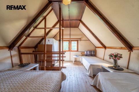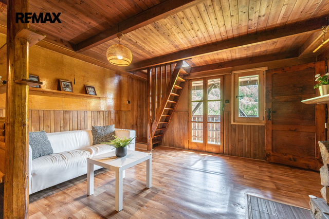 Na klidném místě, v malé chatové osadě u Sázavy nedalekou soutoku s Blanicí, nabízím ke koupi dřevěnou chatu s nádherným výhledem a jedinečnou atmosférou. Chata se nachází v Českém Šternberku, v jeho místní části Červánky. Okolí je vyhledávaným výletním místem, přesto je poloha chaty zárukou klidu a soukromí. Turistický ruch a vodácké kempy se nachází až dále po proudu řeky. Díky tomu si majitelé chat v osadě mohou užívat nerušený odpočinek a současně, pokud chtějí, využívat benefity plynoucí z turismu v okolí. Ať už se to týká možností zajít si na dobrý oběd, kávu nebo si pohodlně nakoupit. Výhodou je také vlakové spojení s Prahou, přičemž vlakem můžete také vyrážet na výlety po okolí. Dispozičně je chata řešena jako patrová. V přízemí se nachází obývací pokoj s krbem a výstupem na terasu, jídelní a kuchyňský kout, předsíň a koupelna s toaletou. V podkroví se nachází 2 ložnice s možností umístění až pěti lůžek. Z obývacího pokoje je výstup na terasu s nádherným výhledem na povodí Sázavy. Pod terasou se nachází sklep o výměře 8,2 m². Vnitřní podlahová plocha chaty (bez terasy a sklepa) je cca 59 m². Vytápění elektrickými radiátory nebo krbem (je vyvložkovaný). Na pozemku je povrchová studánka, z níž je voda soustředěna v akumulační nádrži. Odpad je sveden do komorového septiku, který je zabudován do prostorné zpevněné terasy vedle chaty. Chata stojí na vlastním pozemku o celkové výměře 575 m². Mezi chatou a řekou je udržovaná louka s pravidelnou sečí (cca 80 metrů šířky). Chata je umístěna ve svahu, její obytná část se nachází nad úrovní stoleté vody mimo záplavové území. Přijeďte se podívat na prohlídku, chatu i její okolí si jistě zamilujete! Prodávající si vyhrazuje právo vybrat kupujícího na základě jím zvolených kritérií.