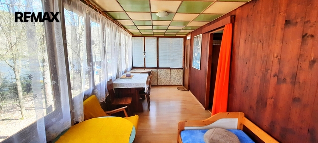 Exkluzivně nabízíme k prodeji dřevěnou podezděnou chatu, která se nachází u přehrady Vranov nad Dyjí, obec Oslnovice, chatová oblast Farářka. Chata má zastavěnou plochu cca 56 m2 a užitná plocha je asi 84 m2. Dispozice: do chaty se vchází přímo na obytnou verandu. Z verandy vejdeme přes chodbičku rovně do prostoru určeného na spaní s dvěma palandami. Dále z chodbičky vpravo se dostaneme do kuchyňky, která je vybavena kuchyňskou linkou s dřezem, plynovým sporákem na PB a kamny na tuhá paliva. Pod chatou se nachází sklep o velikosti cca 28 m2. Chata je vybavena osvětlením na 12 V z baterie nabíjející se ze solárního panelu. Díky převodníku z 12 V na 220 V je možnost připojení TV či podobných zařízení. Ve sklepě se využívá chladnička na PB zdroj. Majitelé mají požádáno o připojení k elektrické síti, což by mělo být realizovat v roce 2026/2027. Chata se nachází asi 50 m od příjezdové komunikace a pouhých několik metrů od vody. Vozidlem je možný příjezd až přímo k chatě. K dispozici voda ze studny vzdálené asi 150 m od chaty. Přímo u chaty k použití suché WC se septikem. Stav chaty je dobrý a prodává se včetně vybavení. Chata se nachází v klidném prostředí 4 km od obce Oslnovice, která disponuje Obecním úřadem, Prodejnou se smíšeným zbožím Coop - Jednota a autobusovou zastávkou. Městys Vranov nad Dyjí se základní občanskou vybaveností je vzdálen 14 km, Moravské Budějovice s kompletní občanskou vybaveností se nachází cca 20 km a okresní město Znojmo 36 km. Doporučujeme pro klienti, kteří hledají klid v přírodě, relaxaci, koupání, rybaření, houbaření. Prodávající si vyhrazuje právo vybrat kupujícího na základě jím zvolených kritérií.