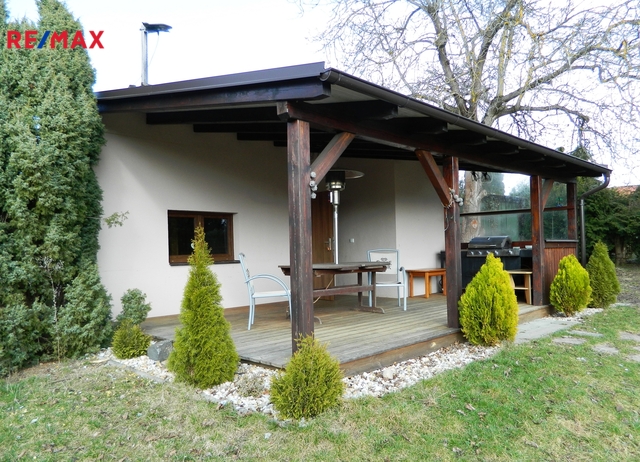 Chata se zahradou se nachází Chotovinách - Červeném Záhoří na klidném slunném místě, v sousedství zahrad. Velkou předností je rozlehlý pozemek o výměře 1.524 m², který nabízí i potenciál pro případnou další výstavbu (zastavitelnost pozemku je 30 %). Zděná přízemní chata s velkou terasou je postavena v zadní části pozemku, čímž skýtá dostatek soukromí. Nahlédněte i na fotografie a situační plánek interiéru. Dispozice chaty je 2 + kk, včetně WC a koupelny se sprchovým koutem. Chata je částečně podsklepena, ve sklepě se nachází elektrický bojler na ohřev 80 litrů vody a čerpadlo na vodu. Teplotu interiéru lze regulovat nástěnnou klimatizační jednotkou (vytápění i chlazení) napojenou na tepelné čerpadlo vzduch-vzduch. Alternativně je možno používat přímotopy. Voda je čerpána z vlastní studny. Odpady jsou svedeny do septiku, z něhož jde voda do pískové filtrace. V chatě je k dispozici 240 i 380 V. Po dohodě s kupujícím je možné ponechat na místě vybavení a zařízení. Na zahradě se nachází také menší sklad zahradního náčiní a techniky. Vysázeny jsou zde ovocné stromy i okrasné stromy a keře. Přístup na pozemek je po zpevněné komunikaci ve společném vlastnictví oprávněných uživatelů. V Chotovinách s necelými dvěma tisíci obyvateli (vč. všech 12 osad a vesnic) je k dispozici veškerá občanská vybavenost: školka, škola (do 9. roč.), obecní úřad, pošta, zdravotní středisko, supermarket, hotel, restaurace, kulturní dům, sportovní hala, fotbalové hřiště, tenisový kurt, vybrané služby. Obec se nachází u sjezdu z dálnice Praha-Tábor (exit 70). Doprava bus, vlak, do Tábora 10 km, do Prahy 80 km. Prodávající si vyhrazuje právo vybrat kupujícího na základě jím zvolených kritérií.