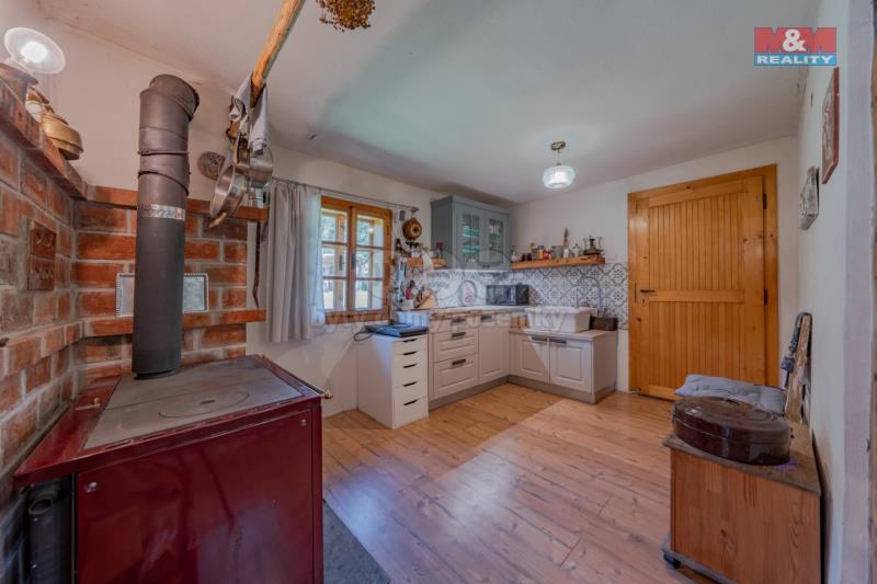 Nabízíme k prodeji roubenou chalupu 2+1 s číslem popisným na samotě v lese, 100 m od slovenské hranice, vhodnou i k trvalému bydlení. Roubenka je po částečné rekonstrukci, napojena na elektřinu, vodu ze studny na cizím pozemku a septik s přepadem do trativodu. V přízemí najdeme kuchyňku, pokoj, koupelnu s WC, terasu a další místnost použitelnou jako dílnu či garáž, v podkroví je 1 pokoj. Vytápění kamny na tuhá paliva nebo krbem s možností výměníku, ohřev vody elektrickým bojlerem. Součástí prodeje je i kamenný, samostatně stojící sklep. Přístup po komunikaci přes cizí pozemky je zajištěn věcným břemenem. V obci s plnou občanskou vybaveností se nachází národní přírodní rezervace Pulčín - největší moravský skalní labyrint. Roubenka je ideální pro milovníky alternativního způsobu života, divoké přírody, turistiky, klidu a samoty. Doporučujeme prohlídku, s financováním Vám rádi pomůžeme.