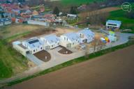 Rodinné domy 5+kk, které zde ve spolupráci s architektem vznikají, nabízí komfortních 167m2 obytné plochy (včetně 26m2 velké garáže). Technickou výhodou domů mimo prakticky řešenou dispozici je tepelné čerpadlo, podlahové vytápění a také propojení s fotovoltaikou. Promyšlené řešení domu podtrhují technické místnosti jako je prádelna s kotelnou, sklad pro zahradu, ale i 3 WC, kdy jedno je přístupné přímo ze zastřešené terasy domu.