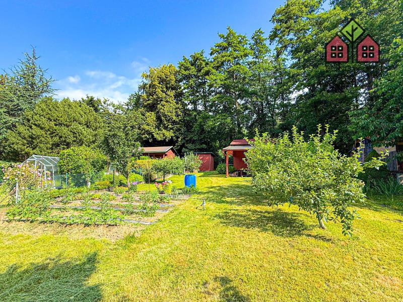 Na převážně rovinaté zahradě o rozloze 405 m2 je umístěný gril a vysazeno několik ovocných stromu či keřů. Při vstupu na zahradu poté najdeme kůlnu pro uskladnění zahradního náčiní a vybavení. Zahrada je plně oplocená pečlivě udržovaná.