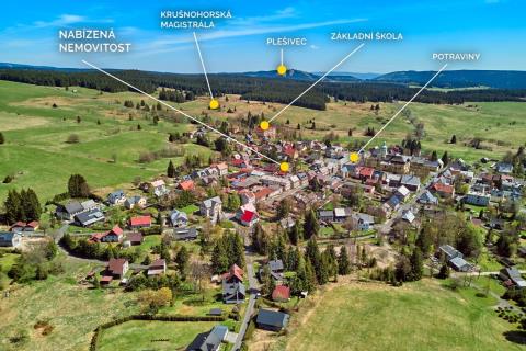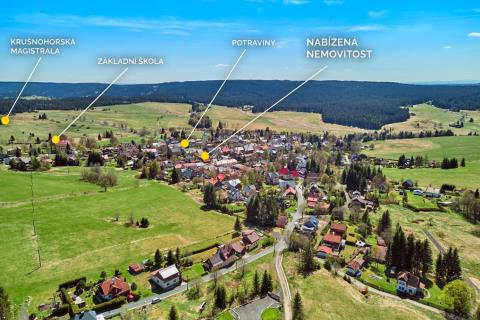 Nabízíme k prodeji chalupu v Krušných horách s dispozicí 5+kk a podlahovou plochou 124m, postavenou na pozemku s výměrou 233m, situovanou do horské obce Horní Blatná, ležící v blízkosti skiareálů Klínovec(19km), Boží Dar)15km) Plešivec(8km) a Krušnohorské magistrály. Vytápění objektu je zajištěno plynovým kotlem s rozvodem do radiátorů. V přízemí je předsíň a společenská místnost s kuchyňským koutem, koupelna se sprchovým koutem, dvěma umyvadly a WC, chodba, technická místnost s finskou saunou. Po dřevěném schodišti vyjdeme do prvního patra, kde jsou celkem čtyři ložnice s kapacitou 11 lůžek a samostatné WC. Součástí prodeje je i řadová garáž s výměrou 33m, vhodná pro uskladnění sportovního vybavení. nemovitost je prodávána včetně zařízení na fotografiích. Současní majitelé nemovitost využívají k týdenním pronájmům se zajímavým výnosem. Bonusem obce Horní Blatná je bezpochyby i místní vyhlášená a vyhledávaná steak restaurace Faustův dvůr vzdálená 250m od prodávané chalupy. Neváhejte nás kontaktovat a domluvit si nezávaznou prohlídku nemovitosti, s jejímž financováním Vám rádi pomůžeme.