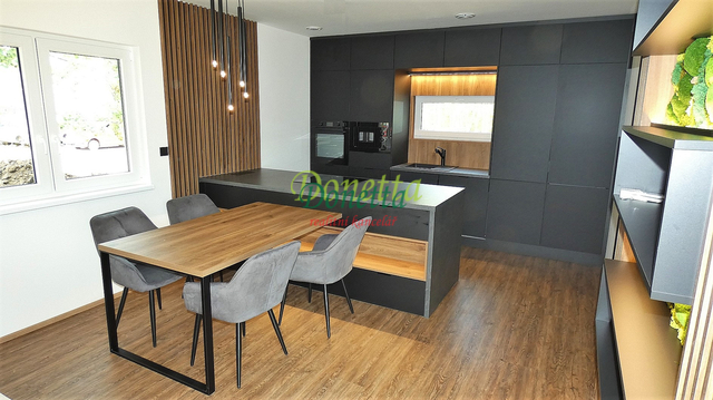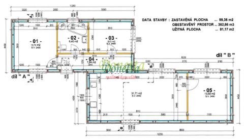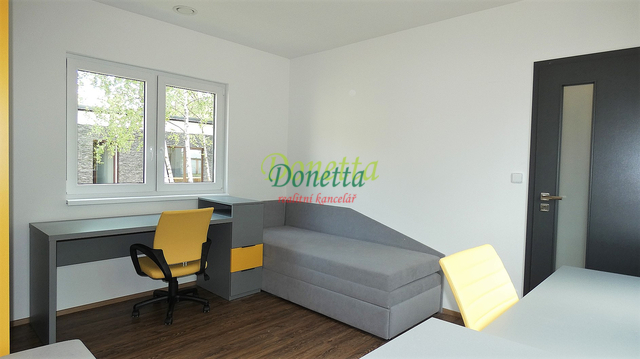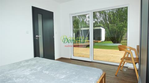 Nabízíme prodej kvalitní a celoročně obytné modulové dřevostavby o dispozici 4+kk. Jedná se o dva montované, na sebe navazující, samonosné moduly 12,25 x 4,45 a 10,25 x 4,45 m. Celková užitná plocha takto uskupeného modulu je 81,17 m2. Výška stropu v obytných částech je 2,5 m, tudíž je možná kolaudace modulu. Dispozice: vstupní chodba, koupelna s rohovou vanou se skleněnou zástěnou, umyvadlem a toaletou, dětský pokoj, další pokoj, případně pracovna, obývací pokoj s kuchyňským koutem a jídelnou a samostatná ložnice. Modul je dodáván kompletně dokončený, včetně rozvodů, podlahových krytin, obkladů, dlažby a sanitárního vybavení. Kuchyňská linka, nábytek a osvětlení nejsou součástí standardního vybavení. Vybavení modulu znázorněné na fotografiích je možné dokoupit za příplatek. Součástí standardního vybavení je rovněž tepelné čerpadlo o výkonu 7,5 kW zajišťující vytápění modulu. Díky tomuto řešení vytápění jsou náklady na provoz modulu minimální. Podlahovou krytinou je vysoce kvalitní vinylová podlaha a keramická dlažba. Okna jsou dodávána plastová s izolačními dvojskly (na přání zákazníka je možná realizace rovněž s trojskly).