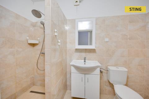 Bytová jednotka 2+1: kuchyň, obývací pokoj, ložnice, koupelna s vanou i sprchovým koutem (bezbariérový přístup), samostatné WC