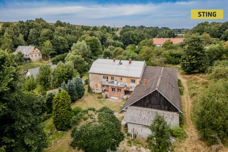 Součástí domu jsou chlévy, garáž, dílna, sklípek a prostorná půda.