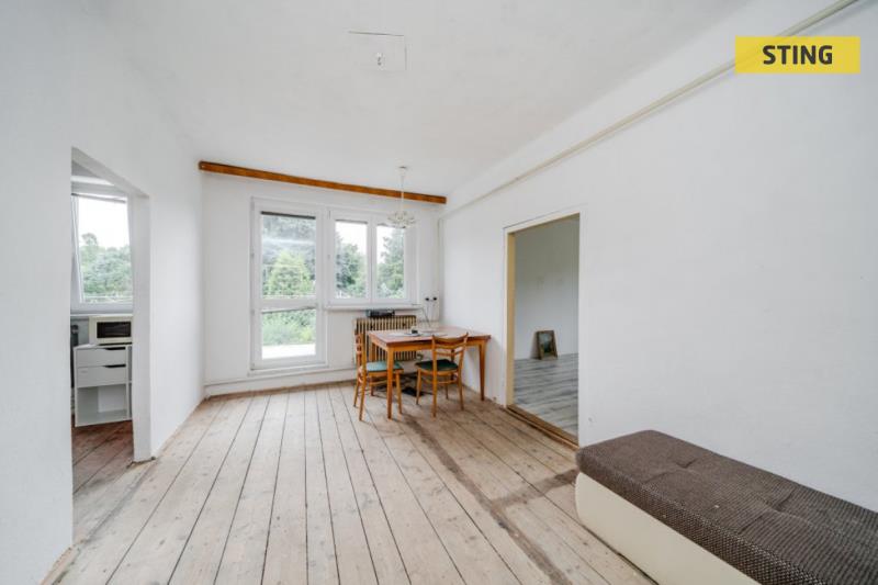 Druhé patro je v původním stavu, lze obývat, dispozice 4+kk s balkónem o podlahové ploše 100 m2, koupelna a toaleta.