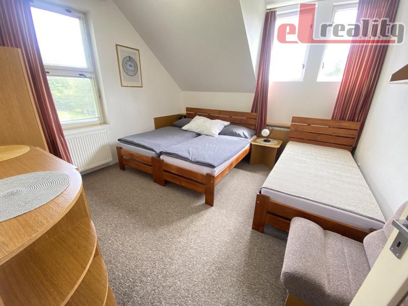 Naše společnost Vám zprostředkuje prodej chaty o velikosti 162 m2 zastavěné plochy a cca 2.800 m2 plochy pozemku. 1. NP se nachází obývací pokoj s kuchyní a posezením, ložnice, WC a koupelna. 2. NP dva pokoje pro celkem 8 hostů, zvlášť kuchyně a posezení. Chata slouží k rekreačnímu ubytování hostů a dlouhodobě se pronajímá. Pozemky jsou ve fázi budoucího dělení. Více informací u realitního makléře.