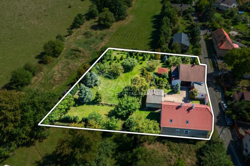 Hledáte velkorysý prostor pro vícegenerační bydlení, kombinaci vlastního domova s podnikáním, nebo investici v malebném prostředí středních Čech? Nabízíme k prodeji unikátní soubor dvou samostatně stojících rodinných domů v obci Velký Chlumec. Tato nabídka spojuje moderní komfort, historické kouzlo venkova a obrovský potenciál pro další rozvoj. Celková plocha pozemků činí úctyhodných 2 065 m². Celková cena za obě nemovitosti: 14 990 000 Kč 1. Hlavní rodinný dům (4+1) Komfort a prostor Modernizovaný dům ideální pro rodinu, která hledá klid a kvalitu. Dispozice: Přízemí o ploše 97,5 m² nabízí dispozici 4+1 s plně vybavenou kuchyní a koupelnou s vanou. Potenciál: Prostorná půda (100 m²) je připravena pro vestavbu dalších pokojů či ateliéru. Technologie: Nové rozvody elektřiny (měď), zateplené betonové podlahy. Vytápění: Útulná krbová kamna doplněná elektrickými přímotopy. V koupelně, kuchyni a chodbě je podlahové vytápění (využívající výhodnou elektro sazbu). Exteriér: K domu náleží garáž a podsklepená kůlna. 2. Druhý dům se stodolou Kouzlo a variabilita Stylové stavení s neopakovatelnou atmosférou, ideální jako dům pro hosty, dílna nebo prostor pro kreativní realizaci. Obytná část (cca 47 m²): Dva světlé pokoje, funkční kuchyně a koupelna se sprchovým koutem. Dominanta nemovitosti: Navazující stodola (36 m²) s vysokými stropy, kterou lze propojit s interiérem a vytvořit tak dechberoucí obývací prostor v loft stylu. Zázemí: Menší sklípek a další úložné prostory. Zahrady: Vaše soukromá oáza Spojené pozemky tvoří rozsáhlý celek o výměře přes 2 000 m², který je rájem pro milovníky přírody: Vzrostlá vegetace: Ovocné stromy, jabloně a dva dominantní ořešáky. Relaxace: Okrasné jezírko u hlavního domu a prostorný dřevěný altán s pergolou u druhého domu ideální pro letní grilování. Lokalita a dostupnost Velký Chlumec nabízí dokonalý únik z města, aniž byste ztratili kontakt s civilizací: Příroda: Lesy a louky v bezprostředním okolí (cykloturistika, houbaření). Beroun: 15 minut (kompletní občanská vybavenost). Praha: Pouhých 30 minut jízdy, ideální pro denní dojíždění. Proč koupit obě nemovitosti najednou? Vícegenerační bydlení: Každá rodina má své soukromí, a přesto jste nablízku. Bydlení a podnikání: Jeden dům využijte jako domov, druhý jako kanceláře, dílnu nebo ubytování typu Airbnb. Maximální soukromí: Koupí obou domů získáte kontrolu nad velkým územím v obci. Přijďte se přesvědčit o jedinečné atmosféře a potenciálu tohoto místa. Doporučujeme prohlídku celého areálu.