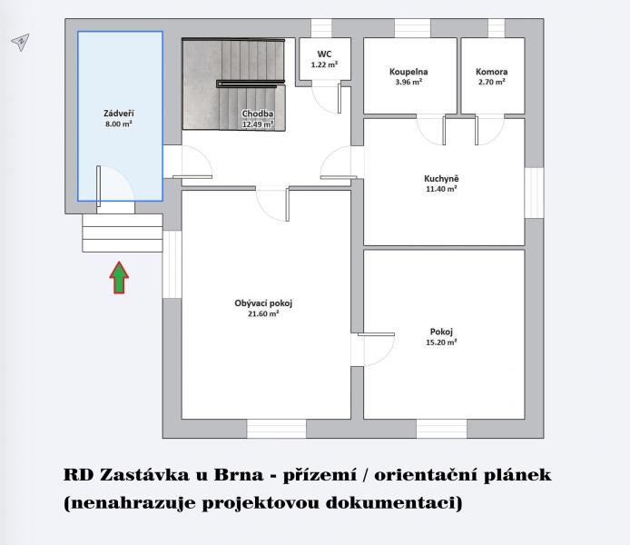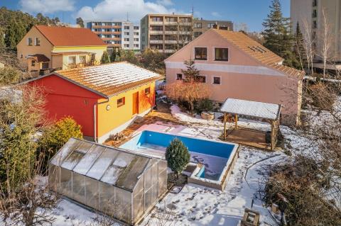 Nabízíme k prodeji samostatně stojící rodinný dům v oblíbené lokalitě Zastávka u Brna. Jedná se o zděný rodinný dům se samostatnou zděnou garáží, situovaný na prostorném a velmi dobře využitelném pozemku o celkové výměře 1 958 m. Pozemek tvoří: zastavěná plocha a nádvoří 508 m zahrada 638 m navazující zahrada 812 m s možností výstavby dalšího samostatného rodinného domu Dům je dispozičně řešen jako dvě bytové jednotky 2+1, což jej činí ideálním pro vícegenerační bydlení nebo kombinaci vlastního bydlení a investice. Dispozice domu: 1. NP: vstupní chodba, předsíň, kuchyně, koupelna s WC, komora, obývací pokoj a ložnice, vstup do sklepa. 2. NP: kuchyně, dvě ložnice, chodba, koupelna, samostatné WC a vstup na půdu. Dům je celopodsklepen. Technický stav a rekonstrukce: Nemovitost prošla v roce 2015 rekonstrukcí, která zahrnovala: nové rozvody elektřiny, vody a kanalizace nová dřevěná eurookna nové interiérové a vchodové dveře včetně obložek zateplení fasády nové podlahy (plovoucí podlahy a dlažba) Součástí domu je nově přistavěná prostorná garáž s elektrickou posuvnou bránou a pohodlným příjezdem. Zahrada a exteriér: Za domem se nachází velký bazén, altánek a příjemné posezení v udržované zahradě. Na tuto část navazuje další pozemek obdélníkového tvaru, aktuálně využívaný jako zahrada, avšak s potenciálem výstavby dalšího rodinného domu. Příjezdová cesta je zajištěna. Nemovitost nabízí klidné bydlení v žádané lokalitě s výbornou dostupností do Brna a zároveň zajímavý rozvojový a investiční potenciál. Pro více informací nebo sjednání prohlídky kontaktujte makléře.