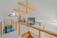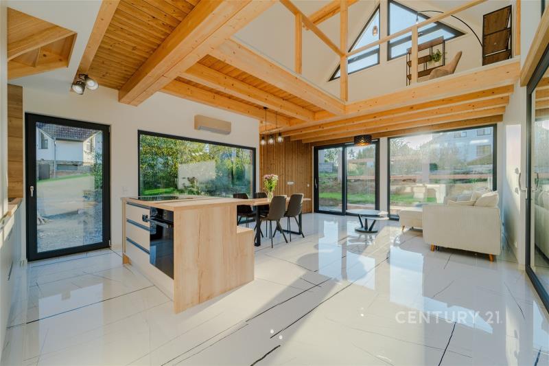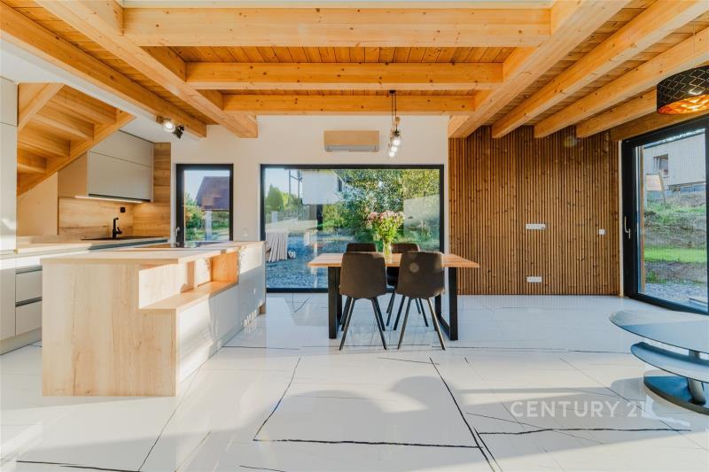Hledáte dokonalý únik od ruchu města? Seznamte se s výjimečnou nemovitostí vzdálenou pouhých 15 minut jízdy autem od Opavy, která nabízí soukromí, klid a harmonii s okolní přírodou. Tento moderní dům – dřevostavba o dispozici 3+kk – je navržen pro náročnou klientelu, která ocení otevřené prostory, velkorysé prosklené plochy a dechberoucí výhledy do zeleně. Každý detail byl promyšlen tak, aby spojoval komfort, funkčnost a nadčasový design. Dům má obdélníkový půdorys o rozměrech 12 × 5,5 m a disponuje jedním nadzemním podlažím a obytným podkrovím se sedlovou střechou. Ze vstupní chodby se dostanete do prostorného obývacího pokoje s kuchyní, odkud se otevírá krásný výhled do okolní přírody. Z chodby je rovněž přístup do koupelny s WC a na schodiště vedoucí do podkroví. V horním patře se nachází obytná galerie, z níž se vstupuje do ložnice. Obytné místnosti jsou situovány tak, aby poskytly maximum denního světla a zeleně – obývací pokoj s kuchyní a galerie mají prosklené plochy orientované do zahrady, ložnice a koupelna s WC jsou orientovány na pozemek před domem. V interiéru jsou použity prémiové kvalitní materiály italská dlažba, obklady, designová kuchyně na míru se spotřebiči Gorenje s 5ti letou zárukou, klimatizace Siemens a video telefon s dálkovým ovládáním přes WiFi. Vytápění zajišťuje elektrické podlahové topení, v koupelně je instalováno otopné těleso žebříkového typu a ohřev vody zajišťuje elektrický zásobníkový ohřívač. Ve společném obytném prostoru jsou instalována krbová kamna, která slouží jako sekundární zdroj tepla a zároveň vytvářejí příjemnou atmosféru. Součástí nemovitosti je vlastní studna, kanalizace je řešena do podzemní splaškové jímky. Parkování je zajištěno venkovním stáním až pro pět aut s elektrickou bránou na dálkové ovládání. Pozemek se nenachází v záplavové oblasti ani na poddolovaném území. Dům je kompletně dokončený a připravený vám poskytnout příjemné zázemí. Pokud hledáte místo, který spojuje moderní komfort s dotekem přírody a poskytuje odpočinek mimo ruch města, pak je tato nabídka určena právě vám. Pro bližší informace mne neváhejte kontaktovat.