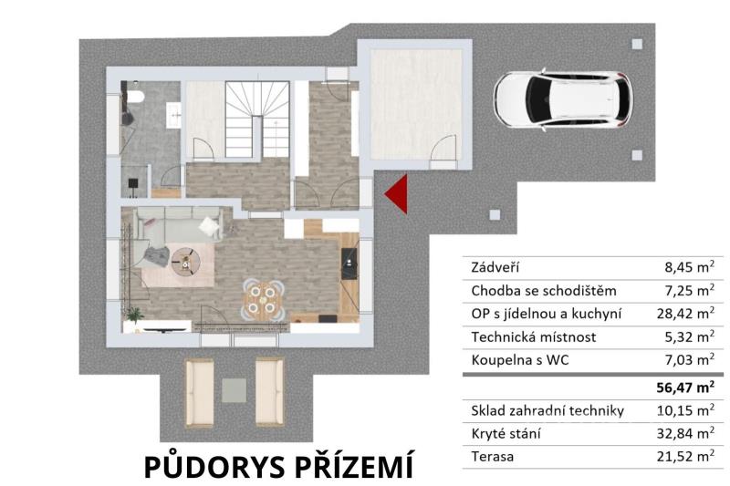 Toužíte po novostavbě rodinného domu? Po bydlení se zahradou pro své děti, nebo po terase k posezení s přáteli? Nebo jen hledáte místo mimo ruch velkých měst, ale s výbornou dostupností? Pak vás tato nabídka jistě zaujme. Nabízím ke koupi rodinný dům s dispozicí 4+kk v Milíkově, jehož užitná plocha činí 108 m2. K domu je kryté stání na auto o ploše 41 m2. Dům nabízí v přízemí obývací pokoj propojený s jídelním a kuchyňským prostorem a výstupem na terasu o výměře 73 m2. Dále prostornou koupelnu s WC, technickou místnost a chodbu se schodištěm do druhého patra. Navíc je zde sklad zahradní techniky přístupný z venku. V patře domu pak jsou 3 prostorné ložnice, koupelna s WC a krásná druhá terasa o výměře 51 m2, navíc s krásným výhledem. Zahrada čítající zhruba 950 m2 je tak akorát velká pro dětské hry, či drobnou zahradní činnost, ale ne zas moc velká pro náročnou údržbu. Dům je napojený na obecní vodovod i kanalizaci. Topení i ohřev teplé vody zajišťuje tepelné čerpadlo Viessmann. V ceně je již dokončený dům včetně podlah, obkladů, osvětlení, sanity, zámkové dlažby a terénních úprav. V ceně není kuchyňská linka. A teď něco málo k lokalitě. Milíkov je obec ležící v samém srdci Beskyd, a to západně od Jablunkova. Je to malebná obec s výbornou dostupností. Do centra Jablunkova je to cca 5 km a od Třince je vzdálen asi 20 km. Okolní příroda, města i obce nabízejí široké vyžití pro celou rodinu v kterémkoliv ročním období, a to jak ve formě horské turistiky, lyžování, cyklistiky, tak i množstvím různých zábavních, sportovní a volnočasových středisek. Pokud vás nabídka zaujala, neváhejte mě kontaktovat. Ráda vám zodpovím případné dotazy a domluvíme si společnou prohlídku.