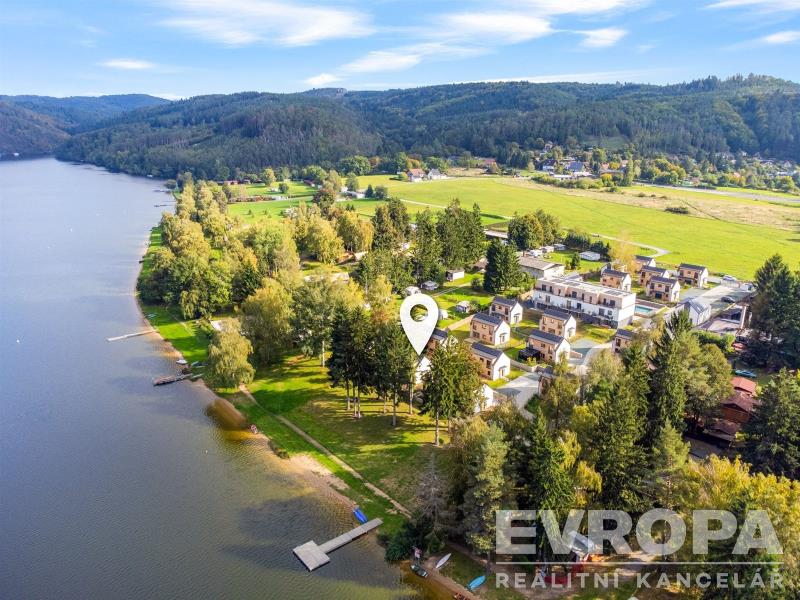 Nabízíme k prodeji moderně zařízenou chatu (112,8 m2) s pozemkem (270 m2) v první řadě od pláže v luxusním areálu Lakeside Resortu Slapy. Od tohoto domu je to cca 30 metrů přímo na písečnou pláž Slapské přehrady. Dům se v prvním patře skládá z předsíně, samostatného WC, šatny, technické místnosti a prostorného obývacího pokoje s kuchyňským koutem. V druhém patře jsou tři ložnice a koupelna s wc. Chata je z tepelně izolační broušené cihly Porotherm 38 EKO+ Profi a na střechách je pálená designová taška Tondach Figaro Engoba. Areál je oplocen a přístupný pouze rezidentům. Na pláž lze vstoupit brankou ve spodní části areálu. Rezidenti mohou využívat vyhřívaný bazén, venkovní posilovnu, ping pongový stůl, dětské hřiště, molo, nebo vyplout na přehradu se sdílenými paddleboardy a kánojemi. Areál leží na samém břehu slapské přehrady, jen pár kroků od písečné pláže. Lokalita nabízí po celý rok nespočet možností jak trávit čas s rodinou a přáteli. Letní sezóna je zde rájem pro milovníky koupání a vodních sportů. Na Nové Živohošti to tepe životem. Zažijte vodní lyžování, windsurfing, jachtaření, potápění nebo paddleboarding. Pět minut chůze od areálu leží tenisové kurty a ani na golf to není daleko. Stačí dvacet minut jízdy autem a ocitnete se na Golf&Spa Resort Konopiště. S dětmi se určitě vypravte pozdravit hradní medvědy na Konopiště nebo vyražte za dobrodružstvím do Lanového parku Slapy. Můžete otestovat i dětské atrakce ve Farmaparku Soběhrdy. NYNÍ K NASTĚHOVÁNÍ!!! Pro více informací kontaktujte prodejce.
