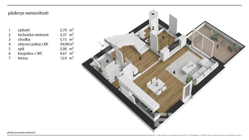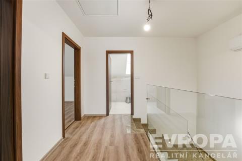 Zděný dům o dispozici 4+kk se dvěma koupelnami a slunnou terasou má užitnou plochu 118 m2. Nachází se v obci Bříza u Všestar na konci slepé ulice jako druhý v řadě čtyř domů s označením dům č. 2 na oploceném pozemku o velikosti 262 m2. Zahrada a přístup do domu jsou situované na příjemnou Jihozápadní stranu. V přízemí se nachází zádveří a technická místnost s tepelkem, přípojkami pro pračku a sušičku, vyvedená kabeláž pro připojení fotovoltaiky a také praktická výlevka. Dominantou prostorné chodby je betonové schodiště v mramoru opatřené moderním skleněným zábradlím a osvětlením schodišťových nášlapů na pohybový a světelný senzor. Pod schodištěm je veliký prostor, který nabízí další praktické využití. Z chodby je vstup do koupelny se sprchovým koutem a toaletou a do obývacího pokoje s prostorem pro umístění kuchyně. Hned vedle kuchyně je komora/špajz. Z obývacího prostoru je příjemný bezbariérový vstup na terasu prostřednictvím velkoformátových terasových dveří (HS Portál). V patře jsou tři ložnice a koupelna s vanou a toaletou. Z horní chodby se přes výsuvné a skládací dřevěné schodiště vstoupí, díky sedlové střeše, do krásného půdního prostoru, který nabízí další užitnou plochu. O teplo a ohřev vody se postará zemní tepelné čerpadlo zn. Vaillant. Dům je napojený na obecní vodu a kanalizaci. V letních měsících jistě oceníte klimatizaci. V interiéru narazíte na kvalitní materiály a moderní technologie. Vytápěné podlahy, kvalitní dveře, mramorové schodiště, velkoformátové obklady, stylová sanita, okna s izolačním trojsklem, HS Portál a elektrické venkovní žaluzie. Domy jsou připravené být energeticky nezávislé umístěním fotovoltaiky. Na vlastním pozemku jsou dvě vyhrazená parkovací místa. K hlavnímu vchodu do domu je vydlážděný chodník s moderním osvětlením na pohybový a světelný senzor. Okolí nabízí široké možnosti a to jak pro relaxaci, turistiku, tak pro sportovní vyžití. Do Břízy jezdí příměstský autobus, kousek od domu se nachází místní Konzum. Vedlejší obec Všestary má dobrou občanskou vybavenost a je zde nejen autobusová, ale i železniční zastávka. Do centra Hradce Králové je to pouhých 10min. a na nájezd na dálnici D11 je to cca 5min. Potenciál si dovolujeme ukázat prostřednictvím prezentačního videa a na fotografiích, kde jsou použité vizualizace. Nejste si jistí nad bydlením v bytě a nebo v samostatném rodinném domě? Bydlení v řadovém domě je zlatou střední cestou. Výhodami takového bydlení může být například výrazně menší únik tepla, vlastní zahrada s minimem práce a třeba vyšší bezpečnost. Těším se na běžných prohlídkách, ale nabízím také viedeoprohlídky v reálném čase přes WhatsApp, Face Time, Messenger, Skype aj.