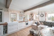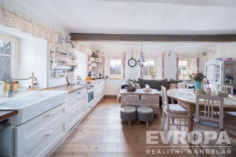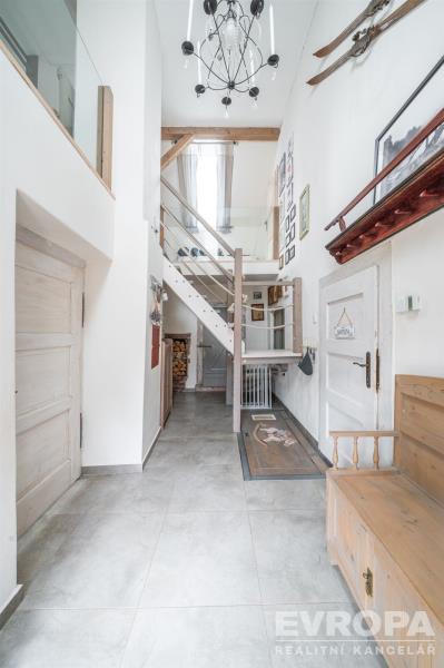 Interiér domu byl citlivě a stylově zrekonstruován s důrazem na zachování původního charakteru. Kombinace dřevěných podlah, nových dřevěných oken, přiznaných trámů a kvalitního masivního nábytku vytváří velmi příjemnou a útulnou atmosféru s vysokým komfortem.
