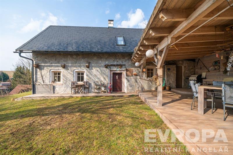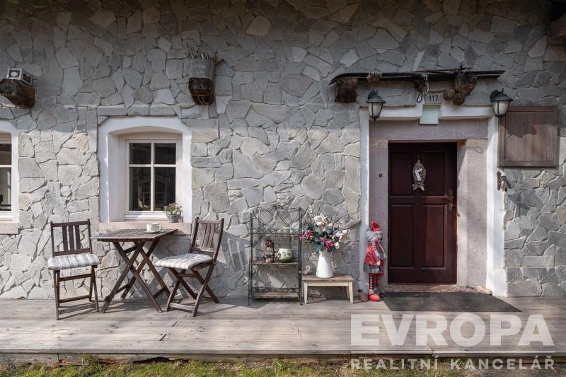 Fasáda domu je tvořena ručně skládaným kamenem dovezeným z Bulharska, což mu dodává naprosto jedinečný charakter. Nemovitost je částečně podsklepená, napojená na obecní vodovod, má novou střechu, nové rozvody instalací a dřevěná okna s dvojskly.