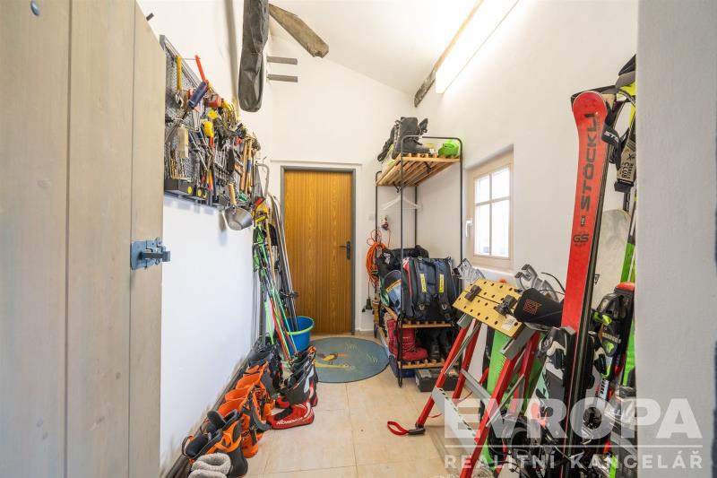 Součástí domu je také prostorná kolna pro uskladnění dřeva, nářadí nebo sportovního vybavení.