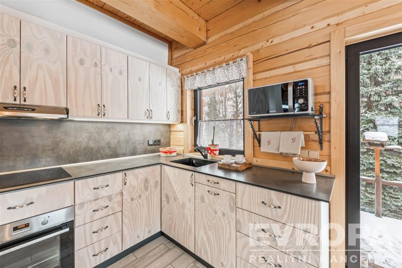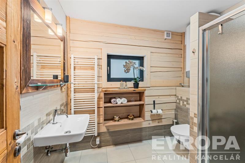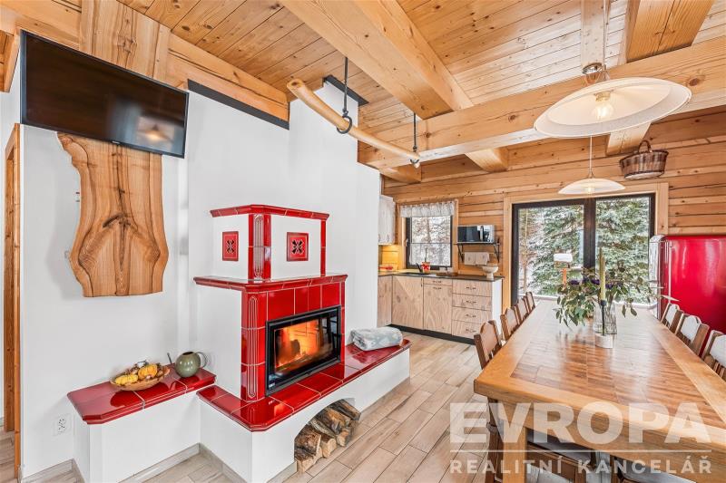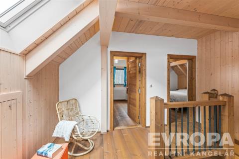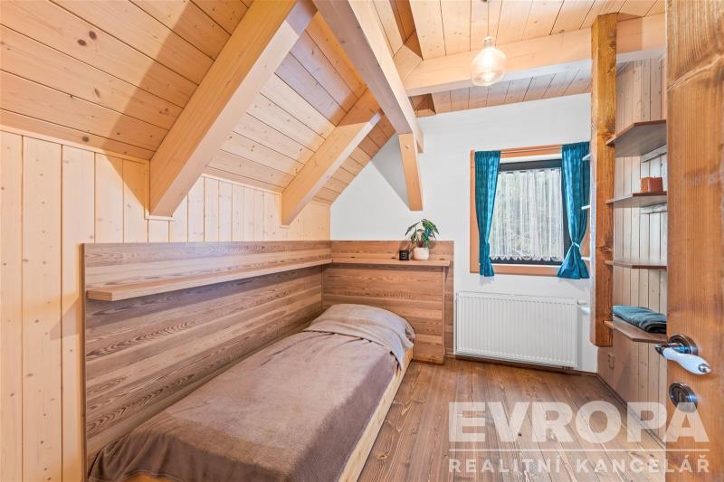 Prodej horské chalupy vhodné pro rodinnou rekreaci, ale i k investičním účelům. Chalupa se zastavěnou plochou 86 m2 se rozprostírá na pozemku o velikosti 1 093 m2 a nachází se v podhůří Krkonoš v obci Prkenný Důl v Žacléři. Horské kouzelné okolí nabízí hodně relaxu, ale i široké sportovní vyžití. V letních měsících turistika v zimním období lyžování na nedalekých sjezdovkách. Přízemí je dělené na vstupní chodbu, dobře vybavenou lyžárnu s držáky na lyže a vyhřívaný žebřík na lyžařskou obuv, technickou místnost, koupelnu se sprchovým koutem a toaletou a úložný prostor pod schodištěm. Dominantou přízemí je světnice se stylovými kachlovými kamny a kuchyňský kout s vestavěnými spotřebiči. Ze světnice je vstup na dřevěnou terasu s nádherným výhledem do svahu. Po moderním schodišti se vystoupá do chodby, ze které je vstup do třech pokojů. Dva pokoje mají koupelnu se sprchovým koutem a toaletou. Každý pokoj má vstup po dřevěném žebříčku do prostor pod střechou, který je přizpůsobený na přistýlky. Celkově má tedy chalupa kapacitu až 13 osob. Chalupu vytápí chytrý elektrokotel, kterým je možné si zatopit i na dálku. V domě jsou dva bojlery na ohřev vody. Voda je obecní a je napojena na filtraci, kanalizace je obecní. Dům je zabezpečen bezpečnostním systémem. Interiér je dokonalým propojením dřeva, doplněné o stylová kachlová kamna a designovou dlažbu. Koupelny jsou vybavené vkusnou sanitou, podlahovým vytápěním a elektrickými žebříčky. Chalupa, zkolaudovaná v roce 2016 prvními a jedinými majiteli, stojí na rovině a je zde vytvořený a připravený prostor na stavbu vodního díla. Část zahrady za chalupou je ve svahu a na hranici zbylé rovinaté části zahrady protéká potok s mírným dnem. Souznění přírody, vkus a moderní technologie, absolutní soukromí, kouzelné výhledy a v pěší vzdálenosti veškerá občanská vybavenost v centru obce, to je dennodenní "rutina" kterou tato chalupa nabízí. Jedná se o prodej firemního vlastnictví, tedy je koupě výhodná hlavně pro plátce DPH s možností odpočtu. Těším se na běžných prohlídkách, ale nabízím také videoprohlídky v reálném čase přes WhatsApp, Face Time, Messenger, Skype aj.