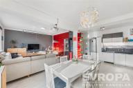 V přízemí se nachází zádveří (2,17 m2), hala (15,10 m2), koupelna s vanou a sprchovým koutem s podlahovým topením (9 m2), samostatná toaleta (2,17 m2), technická místnost (6,97 m2) a obývací pokoj s kk (44,56 m2) se vstupem po schodech do patra.