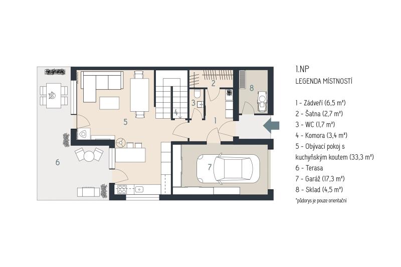 Nabízíme prodej řadového rodinného domu o užitné ploše 130m2 na pozemku 278m2 v žádané lokalitě nová Valcha. Novostavba je dispozičně řešena jako 4kk s garáží, balkónem, terasou a zahradou. K domu náleží čtyři venkovní parkovací stání na vlastním pozemku přímo před domem. Dvě z nich je možné zastřešit pergolou. V přízemí nalezneme hlavní obývací prostor s kuchyňským koutem a jídelnou s přístupem na terasu i zahradu. Dále je zde garáž opatřena elektrickými vraty propojena se vstupní chodbou s šatnou a samostatnou toaletou. V druhém nadzemním podlaží je hlavní ložnice s vlastní koupelnou a šatnou, která se dá využít jako samostatný dětský pokoj. Z ložnice i z šatny je samostatný výstup na balkón nad terasou. Na patře dále najdeme hlavní koupelnu a pokoj. Nemovitost je napojena na veškeré inženýrské sítě. Vytápění a ohřev teplé vody zajišťuje plynový kotel. V zimě možnost využití krbových kamen jako sekundární zdroj vytápění. Energetická náročnost budovy je C. Lokalita nové Valchy nabízí bohaté možnosti pro volnočasové aktivity a relaxaci, je velmi žádaná a známá pro své umístění v klidném prostředí a svou dobrou dostupností do města Plzně. Tato nemovitost představuje unikátní spojení moderního bydlení, praktického uspořádání interiéru a atraktivní lokality, které spolu vytváří ideální prostor pro život. Pro další informace nebo domluvení prohlídky neváhejte kontaktovat makléře.