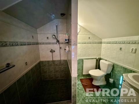 V podkroví naleznete prostornou ložnici se dvěma střešními okny orientovanými na jih a vlastní koupelnu s toaletou – Váš osobní soukromý svět, kde najdete klid a pohodu.