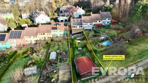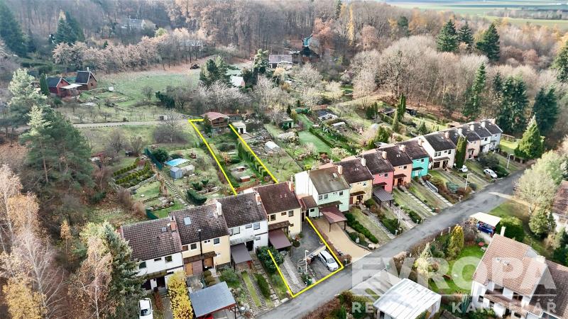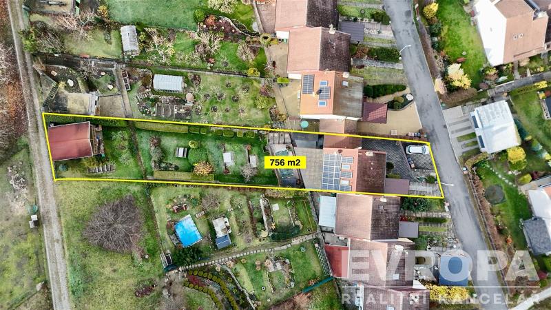 Zahrada je pečlivě udržovaná a lne se směrem nahoru, což vytváří příjemné soukromí a jedinečnou atmosféru. Na konci zahrady se nachází zahradní domek – bonus pro příležitostné přespání dětí či hostů. Praktický je i vstup do zahrady z druhé strany pozemku. A když vyjdete touto brankou, dojdete po 470 metrech na rozhlednu Cvilín.