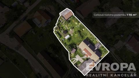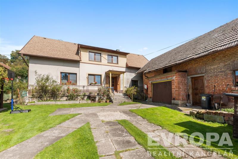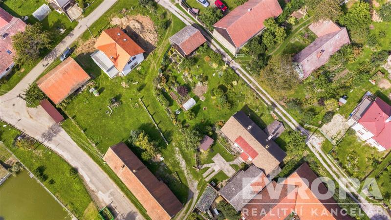 Dominantou domu je krásná udržovaná oplocená zahrada na níž stojí dřevěná kůlna a cihlová stavba (přídomek) ve velmi dobrém stavu s prostory bývalých chlévů a oddělená garáž na jeden OA. Na zahradě v zemi je nádrž o velikosti 1000l na dešťovou vodu.