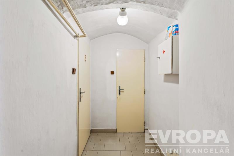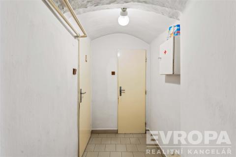 V přízemí se nachází vstupní chodba (7,7 m2) s dominantním schodištěm, kuchyně s jídelnou (12,7 m2) průchozí do obývacího pokoje (23,2 m2), koupelna (4,2 m2), ložnice (13,1 m2), samostatná toaleta, spíž (3,05 m2) a veliký sklep s klenutými stropy (16,4 m2).