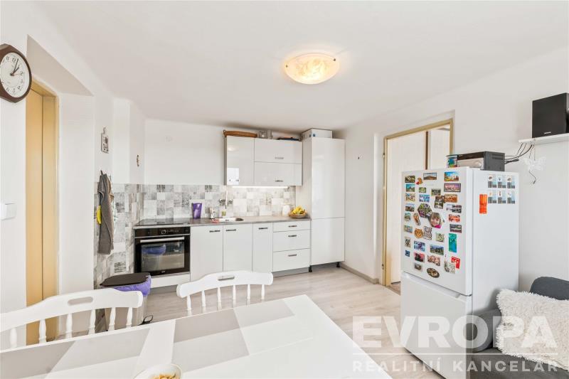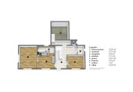 Podkroví nabízí ložnici (8,76 m2), moderní kuchyni s jídelnou (13,39 m2), pokoj s šatnou (33 m2) a prostorný půdní prostor. V domě jsou nová plastová okna a podkroví je zateplené foukaným polystyrenem.