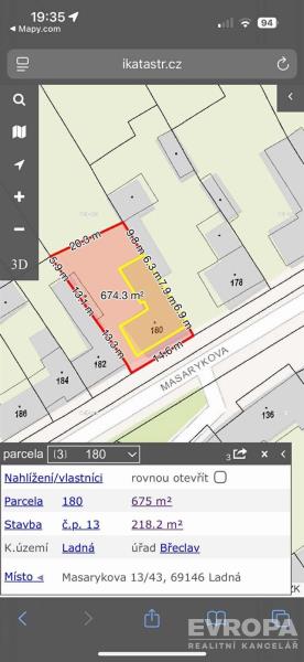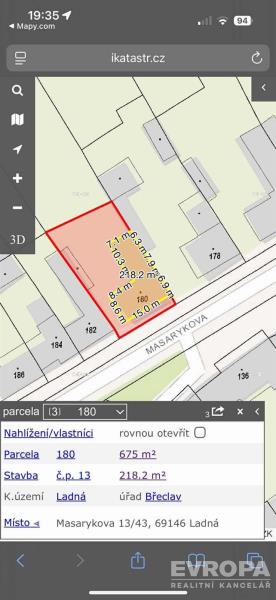 Prodej samostatného rodinného domu 218,2 m² v Ladné dojezdová vzdálenost 5 min. od Břeclavi! Hledáte svůj nový domov v klidné a výborně vybavené obci poblíž Břeclavi? Máme pro vás skvělou nabídku! K prodeji nabízíme rodinný dům v malebné obci Ladná, pouhých 5 minut od Břeclavi. Celková plocha pozemku je 675 m2 a výměra domu je 218,2 m². Jde o ideální místo pro pohodlné rodinné bydlení s atmosférou venkova a skvělou dostupností služeb. Proč si zamilujete život v Ladné? Vše potřebné na dosah: mateřská i základní škola, obchod, pošta, knihovna a obecní úřad – vše pohodlně pěšky. Zázemí pro volný čas: dětská hřiště, fotbalové hřiště a dvě příjemné hospůdky jako přirozené centrum setkávání. Klid a bezpečí: obec není průjezdná, užijete si skutečný klid bez nadměrného provozu. Skvělá dopravní dostupnost: výborné autobusové i vlakové spojení; autem jste za cca 3 minuty v nákupním centru v Břeclavi. Co nabízíme? Prodej rodinného domu s celkovou plochou pozemku 675 m2 Výměra domu 218,2 m² Velkorysý prostor pro pohodlné bydlení s možností úprav dle vašich představ Neváhejte! Kombinace skvělé lokality, klidu a občanské vybavenosti je výjimečná. Kontaktujte nás ještě dnes pro více informací nebo domluvu osobní prohlídky.