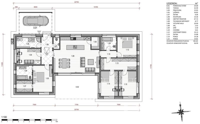 Dispozice 6+kk (podlahová plocha 182 m²): Velkorysý prostor odpovídá potřebám moderní rodiny