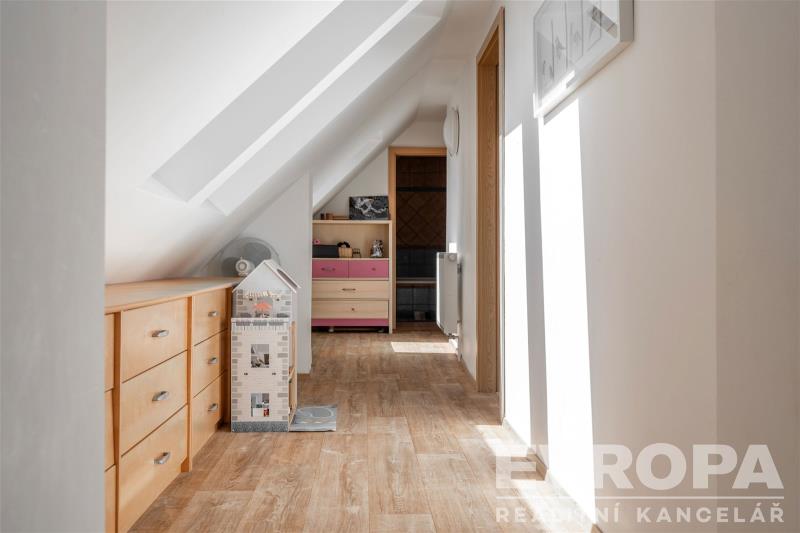 K prodeji nabízíme rodinný dům v ulici Bezručova, který prošel nákladnou rekonstrukcí až do dnešní podoby, v přízemí a podkroví je zhruba 180m2 bytové plochy pro celkem šest pokojů, kuchyň a další prostory. Přízemí je šikovně prosvětlené francouzskými okny na zahradu, obývací pokoj, ložnici a kuchyň doplňuje koupelna, toaleta, technická místnost, šatna a hala. Obývací pokoj je průchozí přímo na kryté venkovní posezení, orientované na jih do klidného vnitrobloku. V podkroví jsou čtyři dětské pokoje a vlastní koupelna s toaletou. Přípojka na obecní vodovod, kanalizaci, k dispozici samozřejmě elektřina a plyn. Ústřední topení na plynový kotel, ohřev vody zabezpečují dva bojlery. Internetové připojení: vysokorychlostní připojení přes optický kabel.