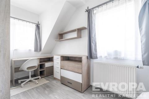 K prodeji nabízíme rodinný dům v ulici Bezručova, který prošel nákladnou rekonstrukcí až do dnešní podoby, v přízemí a podkroví je zhruba 180m2 bytové plochy pro celkem šest pokojů, kuchyň a další prostory. Přízemí je šikovně prosvětlené francouzskými okny na zahradu, obývací pokoj, ložnici a kuchyň doplňuje koupelna, toaleta, technická místnost, šatna a hala. Obývací pokoj je průchozí přímo na kryté venkovní posezení, orientované na jih do klidného vnitrobloku. V podkroví jsou čtyři dětské pokoje a vlastní koupelna s toaletou. Přípojka na obecní vodovod, kanalizaci, k dispozici samozřejmě elektřina a plyn. Ústřední topení na plynový kotel, ohřev vody zabezpečují dva bojlery. Internetové připojení: vysokorychlostní připojení přes optický kabel. Celkové měsíční náklady na bydlení jsou nyní průměrně 9.400 Kč pro čtyři osoby. V případě zájmu můžeme v domě ponechat téměř veškeré vybavení.